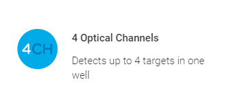 4 channels (Ch1: FAM, SYBR Green, Ch2: HEX, VIC, JOE, Ch3: ROX, Texas Red, Ch4:Cy5)